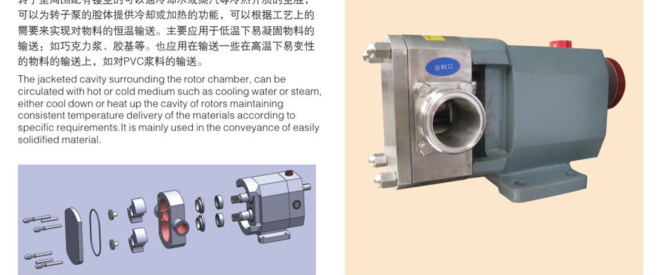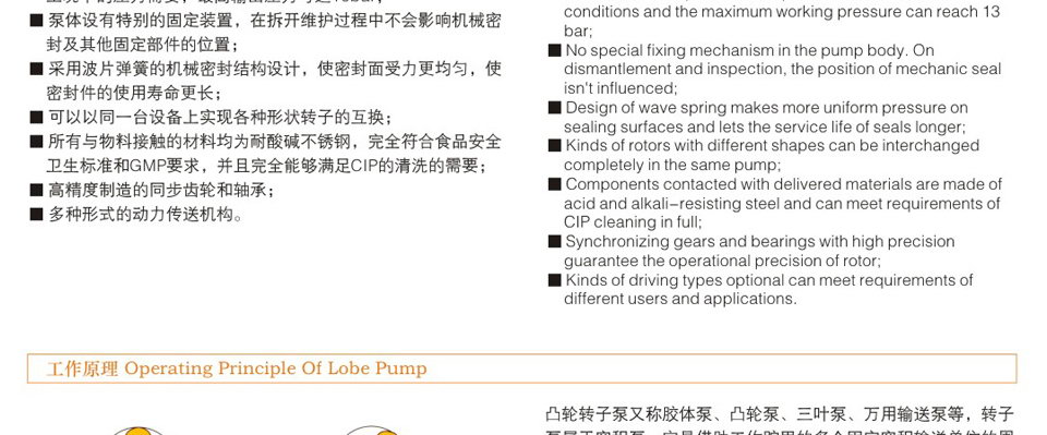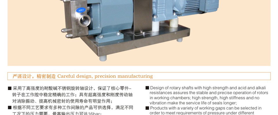 6、轉(zhuǎn)子和轉(zhuǎn)子之間絕無(wú)接觸,長(zhǎng)期使用亦無(wú)磨損,運(yùn)轉(zhuǎn)平穩(wěn),噪音低,效益高。 7、設(shè)計(jì)新穎、安裝維護(hù)簡(jiǎn)單容易,方便清洗,保證機(jī)器內(nèi)部和生產(chǎn)衛(wèi)生清潔。