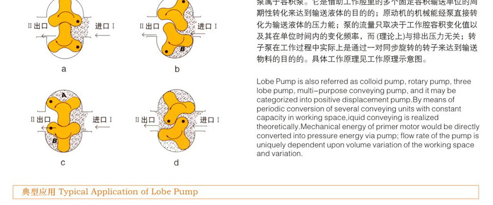 ZB3A系列膠體泵-又稱羅茨泵、不銹鋼轉(zhuǎn)子泵、凸輪泵、萬(wàn)用輸送泵、酵母泵、蝴蝶泵、三葉泵、鞋底泵、藥料泵、熱溶膠體泵、顆粒膠體泵、渣料泵、蛋白渣泵、高濃漿泵等,依靠?jī)蓚€(gè)同步反轉(zhuǎn)動(dòng)的轉(zhuǎn)子在旋轉(zhuǎn)過(guò)程中于進(jìn)口處產(chǎn)生吸力(真空度),從而吸入所要輸送的物料。